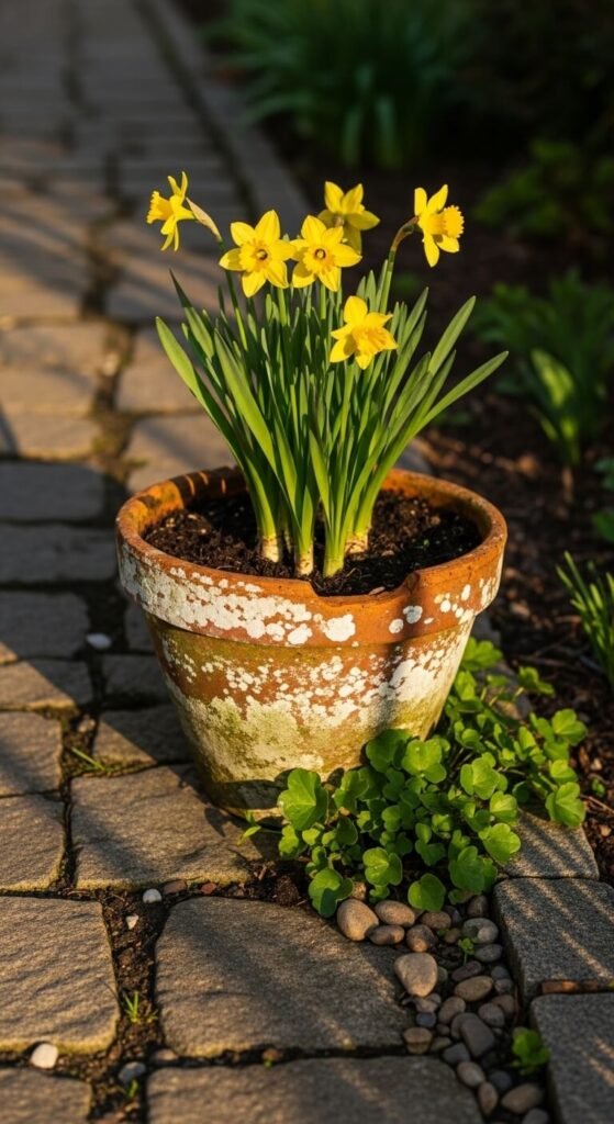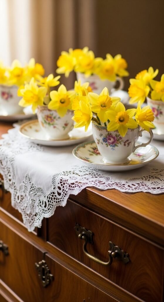 Raid your grandmother’s china cabinet or hit up a thrift store. Teacups make charming mini vases for daffodils. Look for cups with chips or cracks—they’re cheaper and add character.