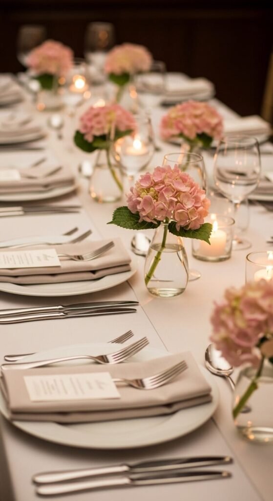 12. Mini Hydrangea Arrangements at Each Place Setting