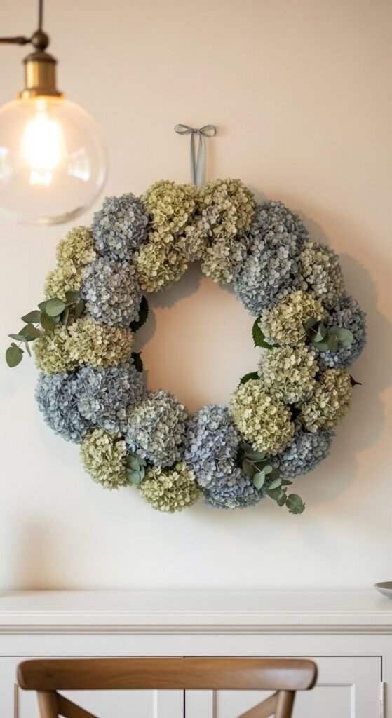 21. Hydrangea Wreath for the Dining Room Wall