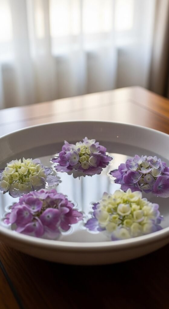6. Floating Hydrangea Blooms in a Bowl