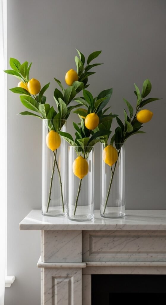 Faux lemon branches from craft stores look surprisingly real and last forever. Stick them in tall clear vases for a Tuscan vibe.
