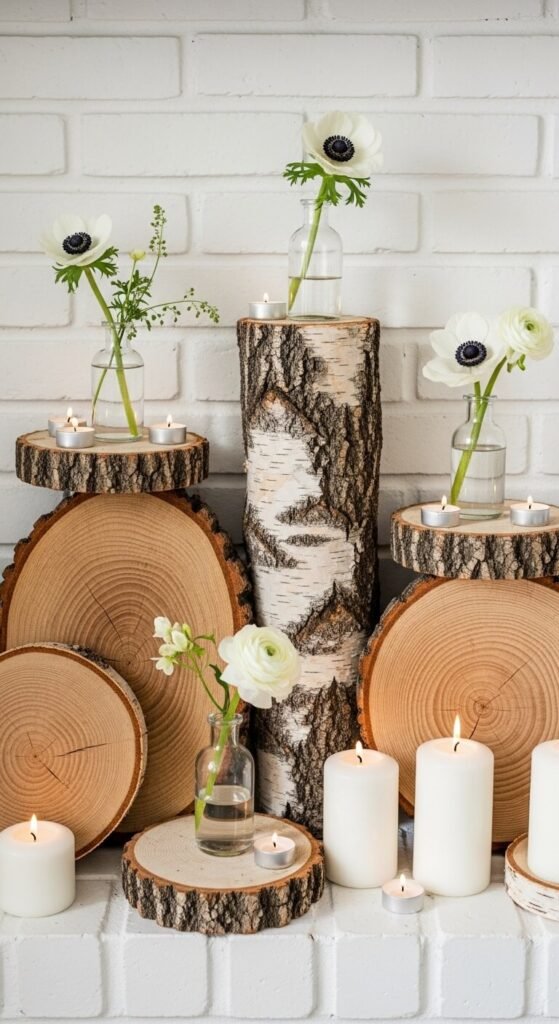 Cut birch branches into 2-inch thick rounds or buy pre-cut slices online. The bark and rings add texture.