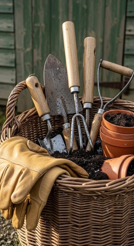 Vintage Basket with Garden Tools