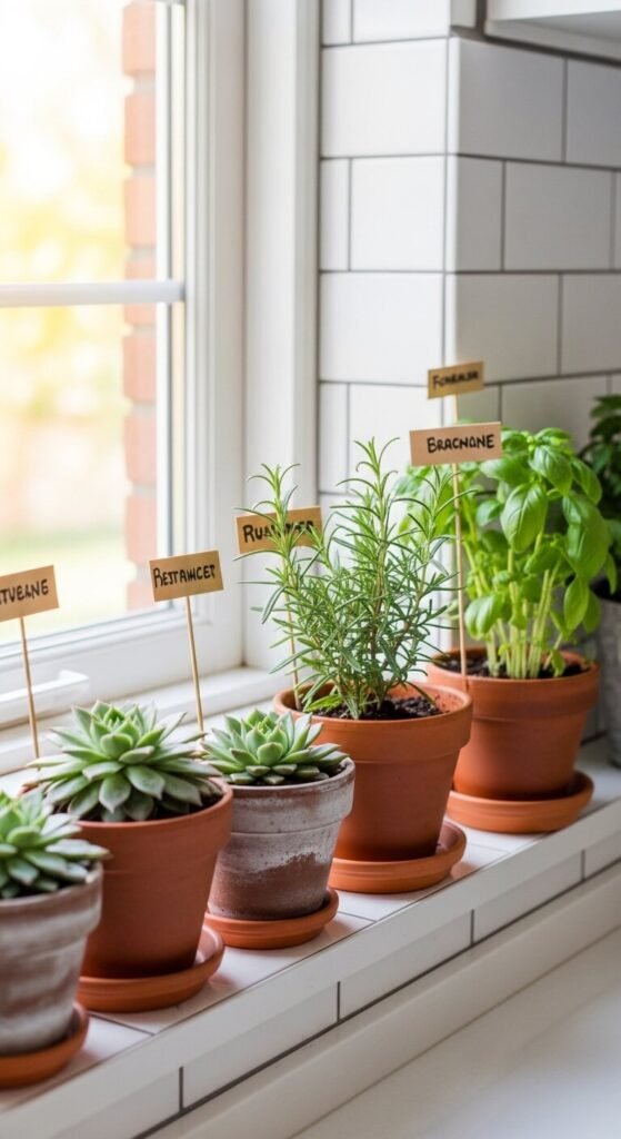 12. Kitchen Windowsill Herb-and-Succulent Mix