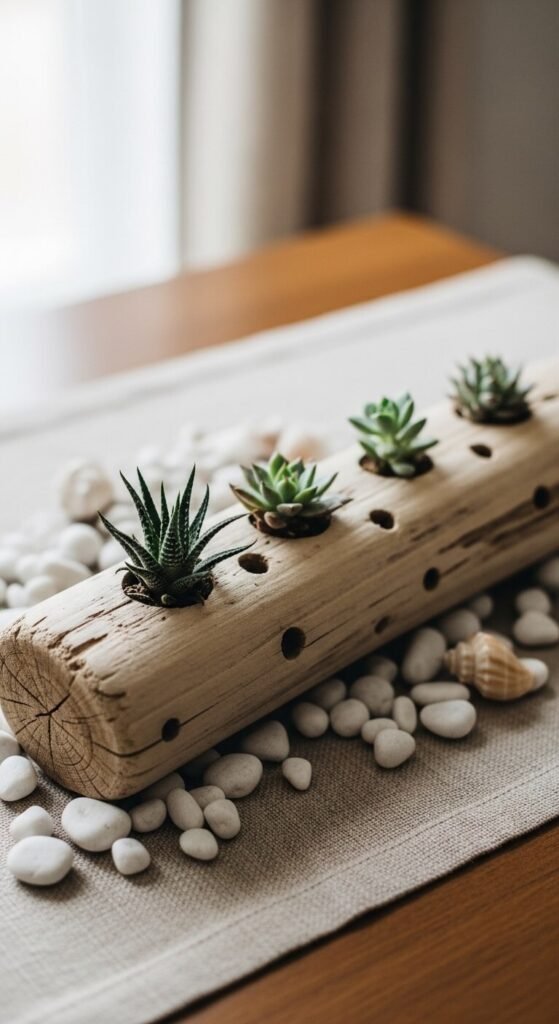 Find a piece of driftwood at a beach, river, or craft store. Drill small holes into it and fill them with well-draining succulent mix. Press small cuttings or plugs into each hole. This creates a one-of-a-kind, organic centerpiece. The wood doubles as a natural moisture buffer. Seal the bottom with burlap to hold soil in place. Hang it on a wall or lay it flat on a coffee table. Total cost can be as low as $10 if you source the wood yourself.