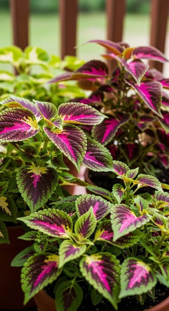 Skip flowers entirely and use coleus for bold color. Buy three different colored coleus ($4-5 each) and plant them together. Their leaves come in wild color combinations—pink and green, burgundy and yellow, lime and purple. Coleus prefers partial shade and stays colorful all season. Pinch off flower spikes to keep energy in foliage. This option works perfectly for areas with limited sun. Cut back leggy stems anytime. Take cuttings in fall to grow indoors through winter.