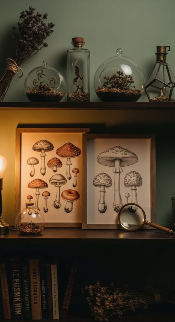 Mushroom prints are having a real cultural moment — and they look genuinely stunning on walls. Scientific-style fungi illustrations have incredible detail: the gills, the caps, the spore patterns. They feel both artistic and curious. Search for vintage mycology prints or watercolor mushroom art on Etsy. These work especially well in kitchens, home offices, and eclectic living spaces. Pair them with earthy tones like terracotta, rust, or forest green for maximum effect.
