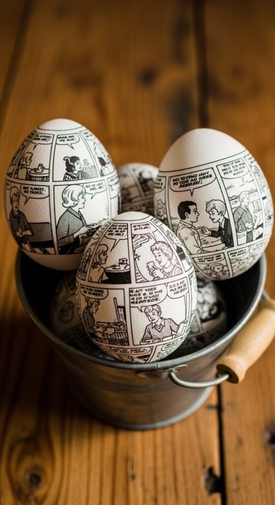 22. Comic Strip Decoupage Eggs