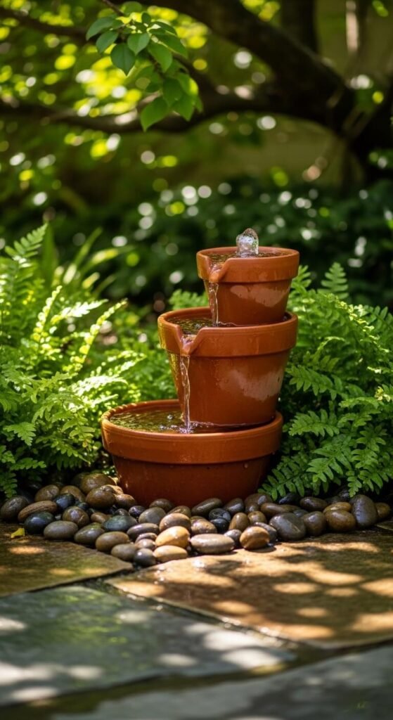 10. Terracotta Pot Layered Fountain