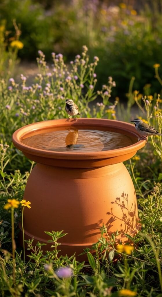 11. Terracotta Pot Bird Bath