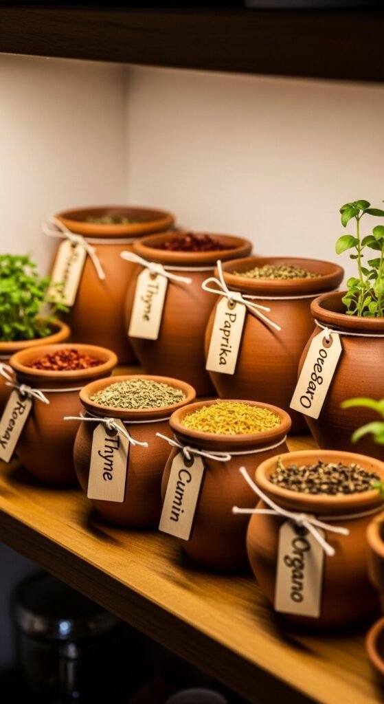 12. Mini Terracotta Pots as Spice Storage