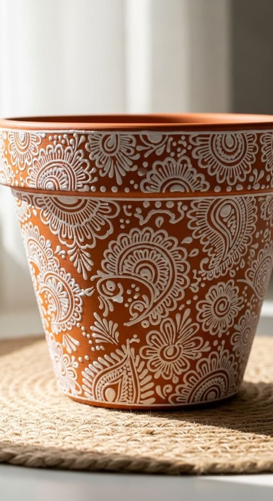 22. Terracotta Pot Henna-Inspired Patterns