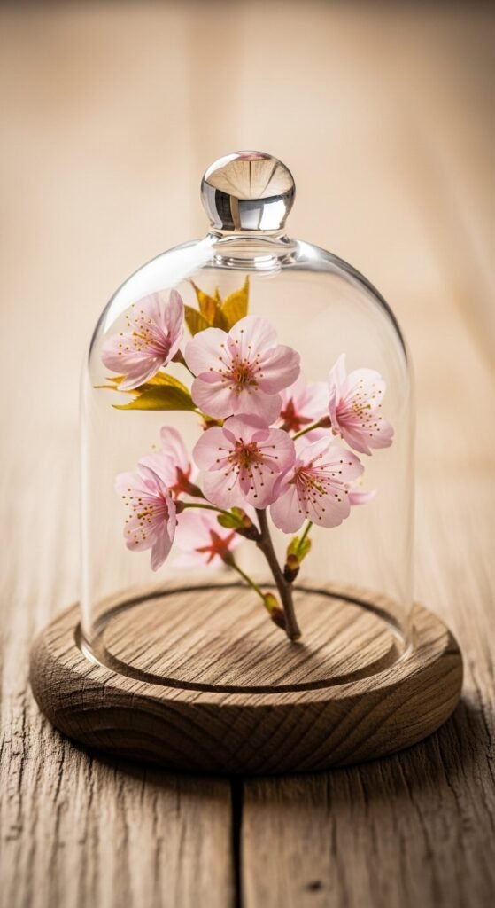 Create miniature landscapes inside glass terrariums using small blossom stems. Terrariums range $8-15 at home stores. Add moss, small stones, and miniature branches. The enclosed space magnifies their delicate beauty. Place on desks or side tables. This low-maintenance option stays beautiful for months. Mist lightly weekly if using silk flowers with moss. Perfect for small spaces or offices.