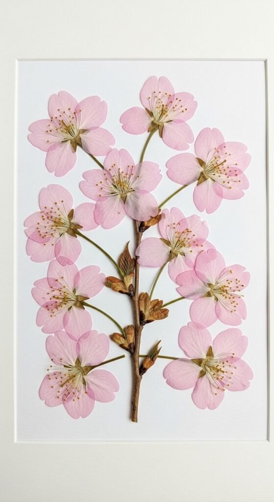 Press real cherry blossoms between heavy books for two weeks. Mount on white cardstock and frame. Use dollar store frames to keep costs under $5 per piece. Create a gallery wall with multiple frames. Label with dates to mark each spring. This preserves actual blossoms from memorable moments. Kids can help with this simple craft. Rotate annually with fresh specimens.