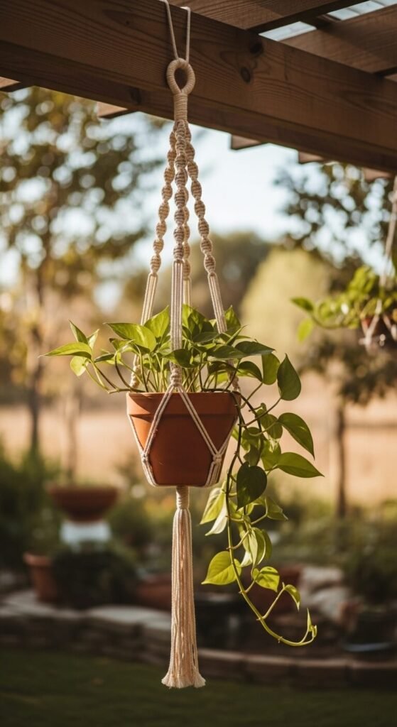 Macramé planters add texture, movement, and bohemian charm to any outdoor corner.