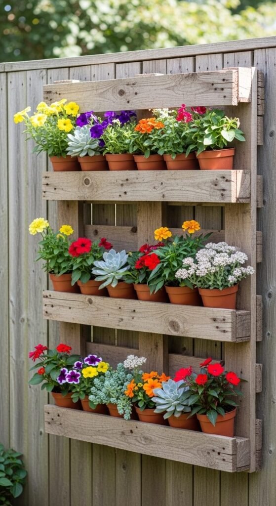 Stand it upright, secure it against a fence or wall, and tuck small pots into the slats. Staple landscape fabric to the back slots to hold soil directly if you prefer.