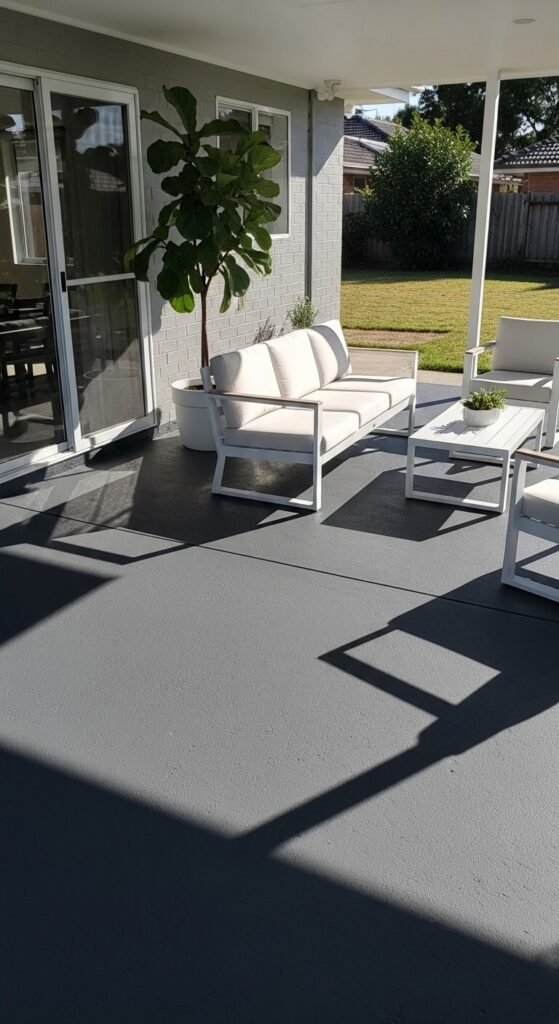 Clean the surface well first and apply a concrete primer for better adhesion. A painted patio paired with new furniture looks like a completely different space. It’s one of the highest-ROI outdoor projects available.
