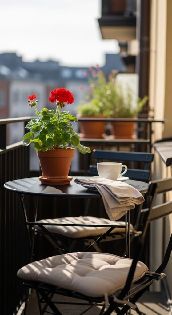 A bistro set turns even a tiny balcony into a proper outdoor dining spot.