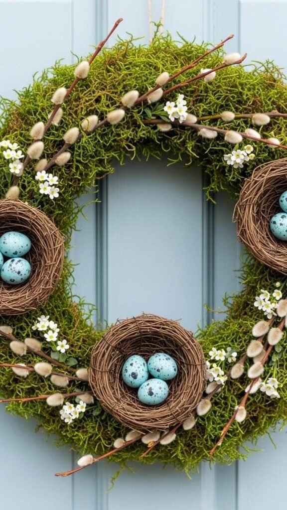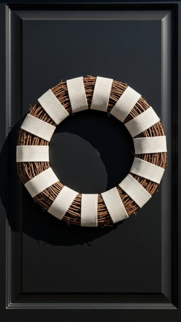 Sometimes less is more. Bundle twigs into a circle and wrap sections with wide ribbon in a spring color. This takes 15 minutes and costs under $8. The simple design lets your door color shine through. Perfect for modern or Scandinavian-style homes. Swap ribbon colors to match any season.