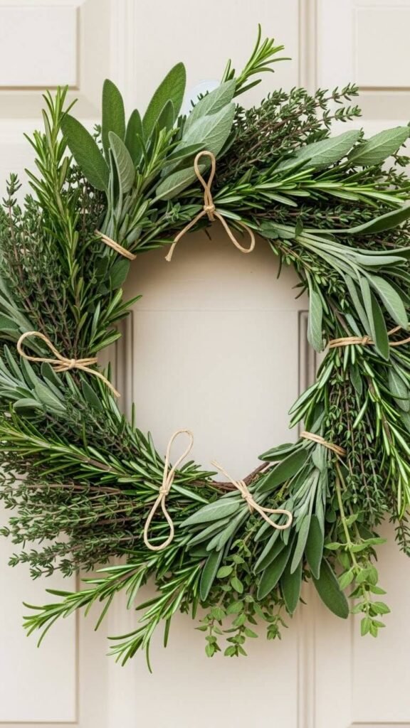 Make your entryway smell like a garden. Wire fresh herb bundles to a grapevine base. Rosemary, thyme, and sage stay fresh-looking for weeks and smell amazing. This edible wreath costs $8-12 if you grow herbs, or $15-20 from the grocery store. Replace bundles as they dry. Perfect for foodies.