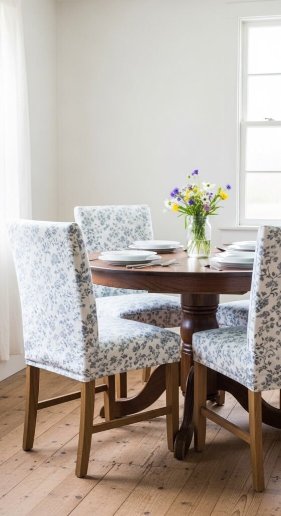 Chair slipcovers are one of the most underrated seasonal styling tricks. They change the whole personality of a dining room in minutes.