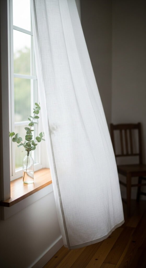 You don’t have to spend much. IKEA’s LISELOTT sheers or white muslin fabric from a craft store work beautifully. Hem them with iron-on tape if sewing isn’t your thing.