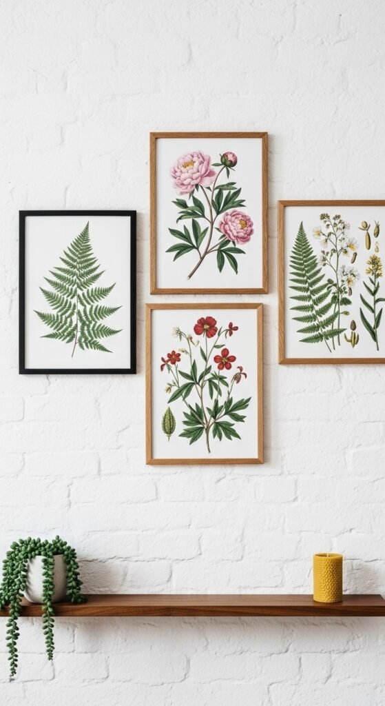 Botanical prints are one of the most timeless cottage wall art choices. They feel studied, collected, and inherently connected to the natural world.