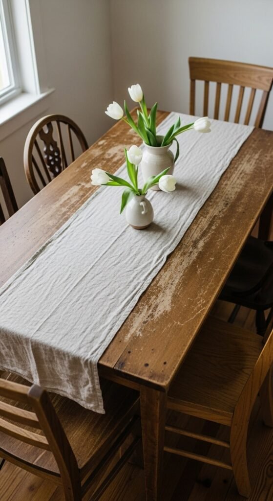 A linen table runner is one of the simplest ways to dress a table without a full tablecloth.