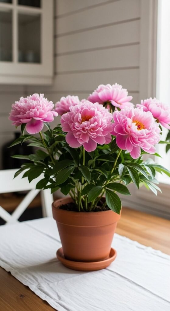 28. Bring In a Potted Peony or Rose as a Living Centerpiece
