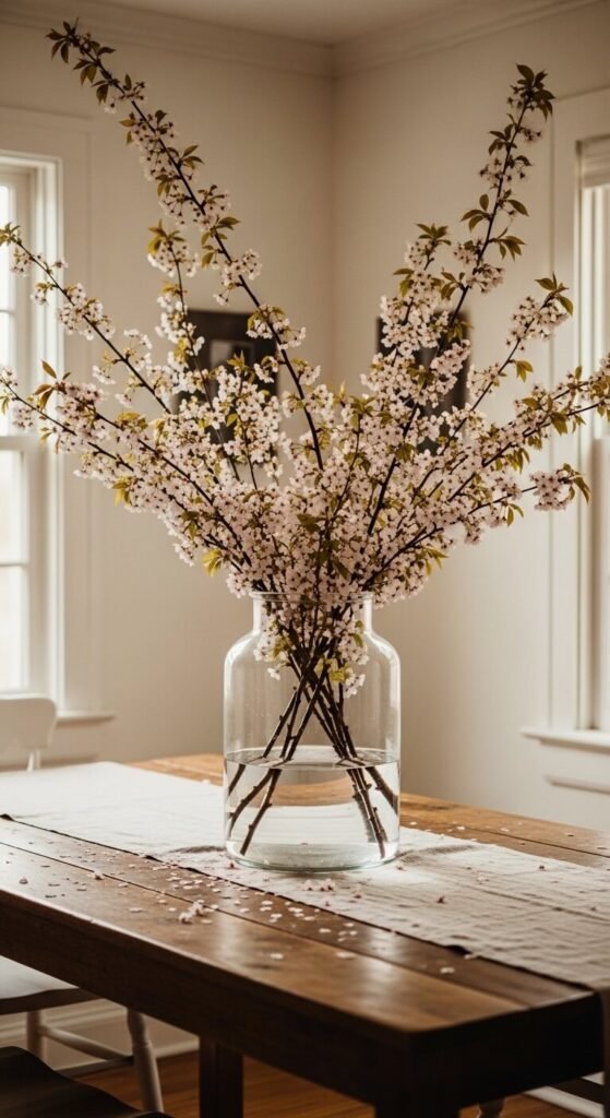 Even bare branches with budding leaves look chic in a large ceramic vase. It’s one of those ideas that looks expensive and takes five minutes. Clip a few stems on your morning walk and you’re done.
