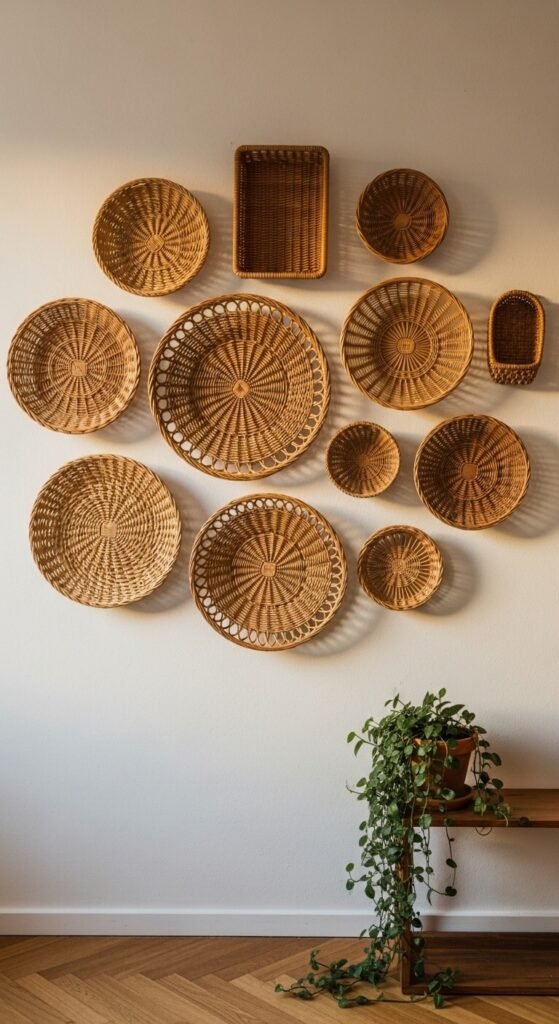 Basket walls are having a real moment — and for good reason. They add texture, warmth, and a handcrafted feel that artwork alone can’t always deliver.