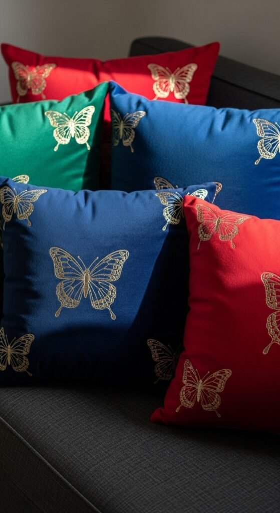 DIY approach? Buy plain pillow covers and use fabric paint with butterfly stencils. Stamp multiple colors for an artistic, handmade feel. Or try iron-on transfers featuring vintage butterfly illustrations. This takes 30 minutes and costs under $15 for supplies.