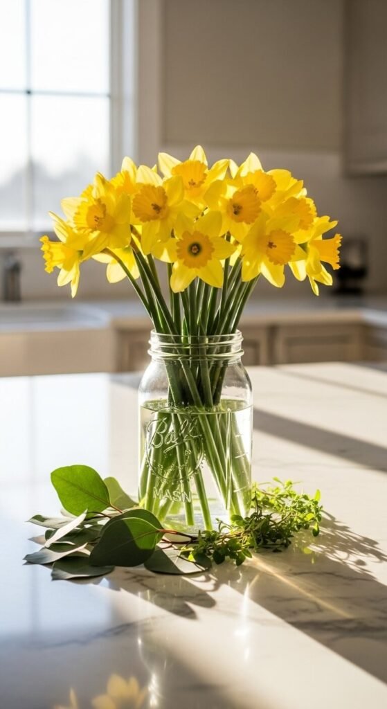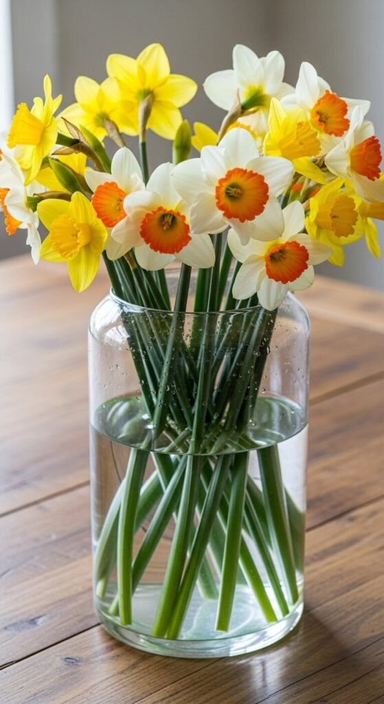 If you want to pair daffodils with tulips, roses, or other blooms, condition them separately first for at least two hours. Once the initial sap has leached out, rinse the daffodil stems with clean water before adding them to a mixed arrangement. This prevents the narcissus sap from wilting your other flowers.