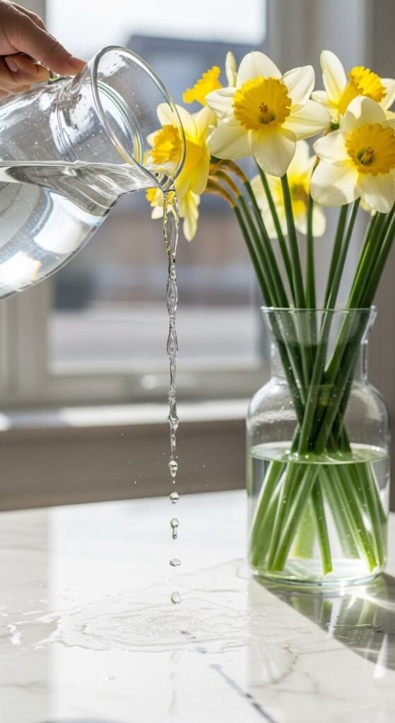 Daffodils prefer cool water — warm water speeds up wilting and makes stems go soft.