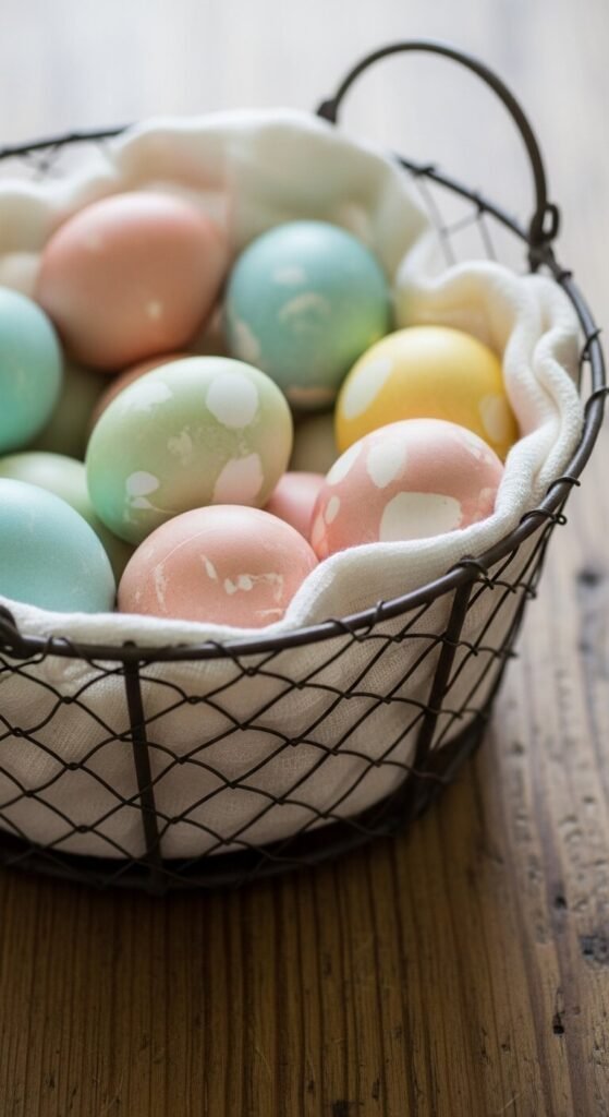 Display Thoughtfully: Arrange eggs in vintage wire baskets, wooden dough bowls, or ceramic bowls. Group odd numbers together (3, 5, or 7) for visual interest.