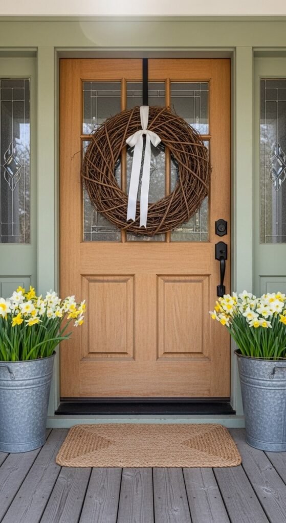 - Add a doormat in a neutral shade with a subtle spring greeting