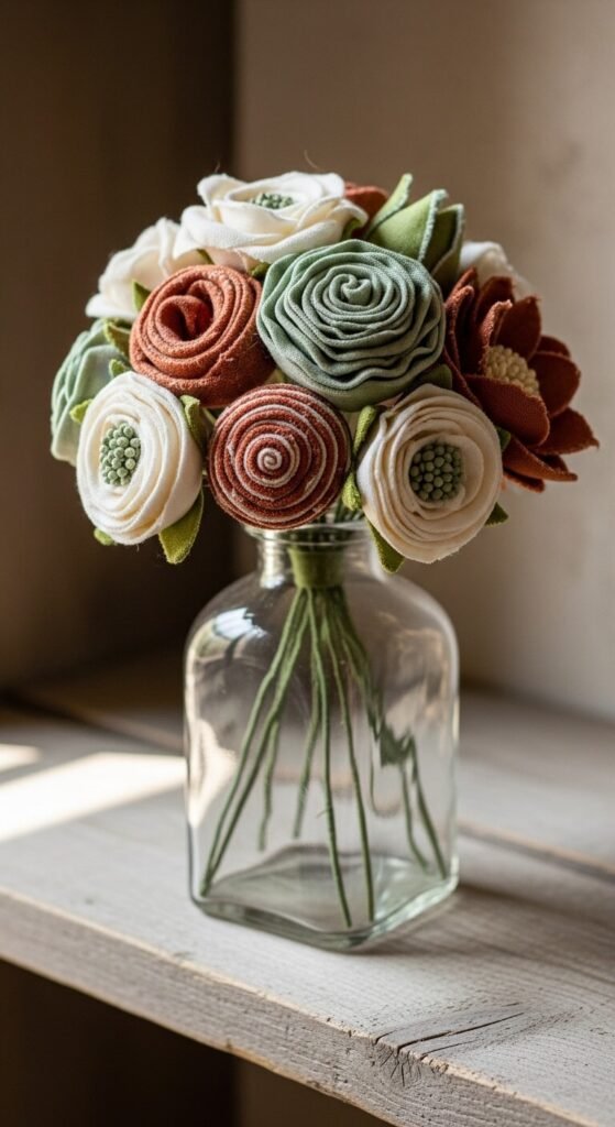 - Vary your fabric textures: Mixing matte felt with shiny satin in the same arrangement creates beautiful depth.