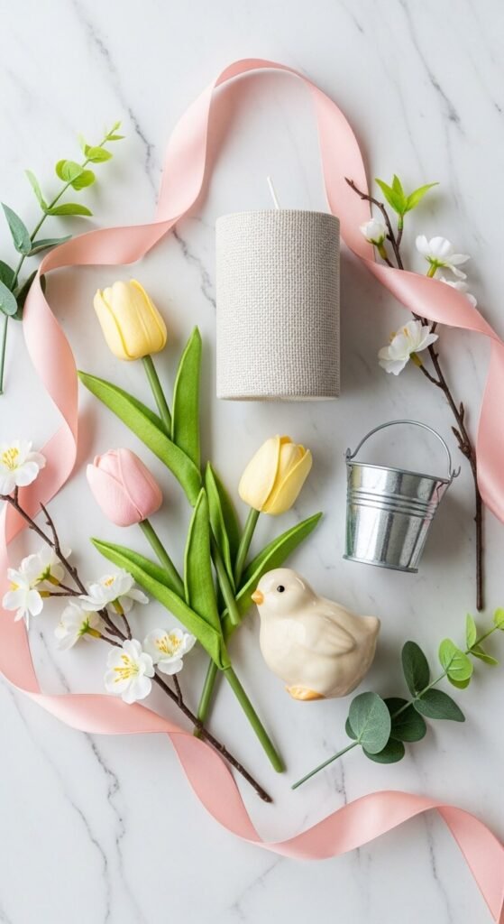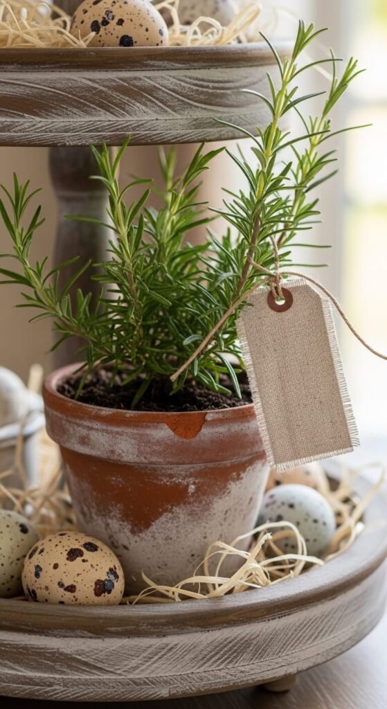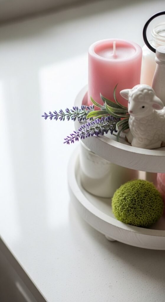 Nothing says spring like something alive (or at least looking like it is). Adding a natural element instantly warms up the whole tray and keeps it from feeling too “dollar store.”